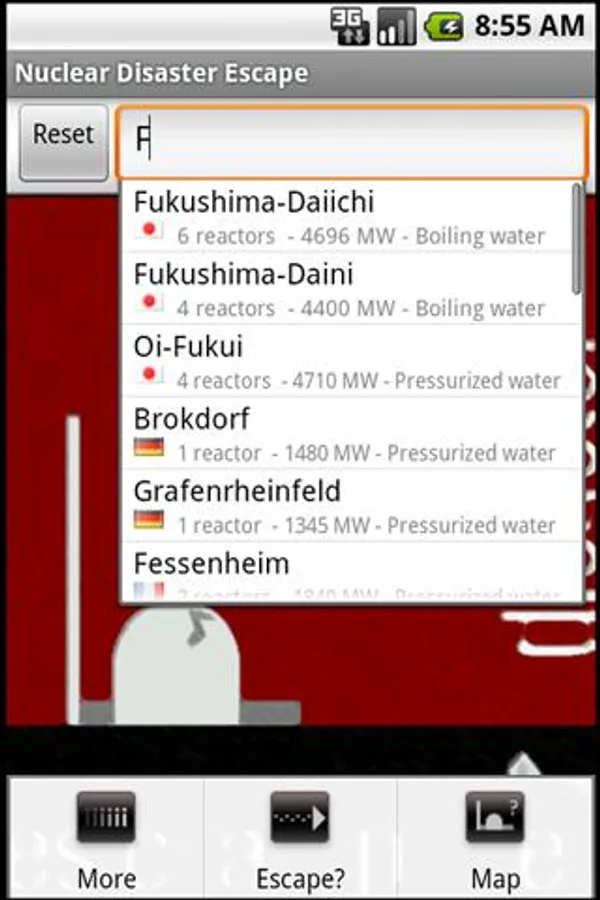 Nuclear Plant Disaster Escape is the ultimate Nuclear Plant Earth Viewer and gives you a fast and easy overview to all active nuclear reactors worldwide based on exact GPS position data. Choose and find the fast way to escape from those hazard’s simply with one click, when you feel in nuclear emergency. Useful characteristics like electricity output, reactor blocks, lifetime and further informations, results into a deep insight of your nuclear surroundings. Protect yourself and use the Opportunities of your mobile with this app. It’s time to know ALL!