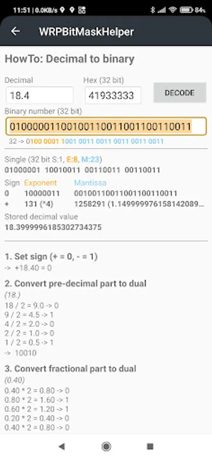This app was created by me with great care, but I cannot guarantee that this app will always generate meaningful results! The floating point number functionality in particular should only be used for initial training purposes.