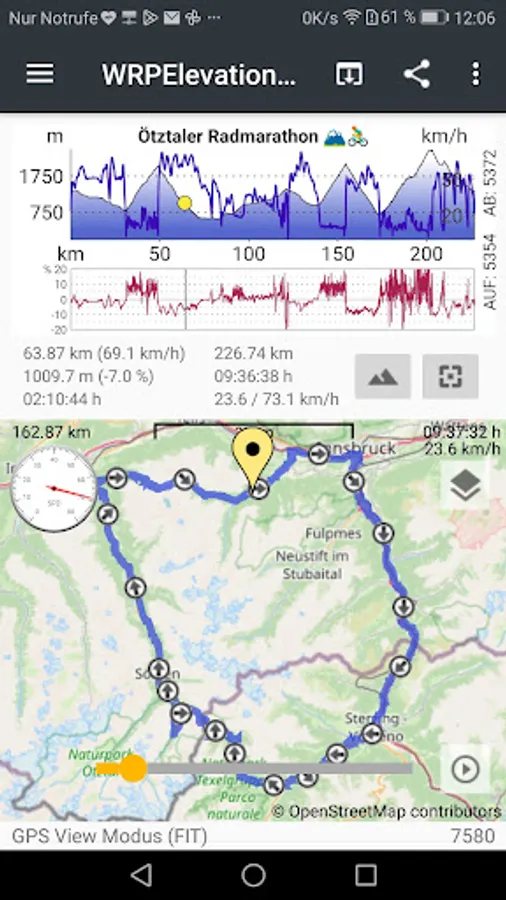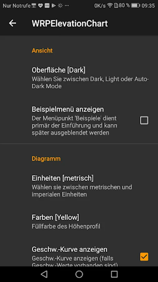 - (New) X-axis can now optionally be displayed as a time based axis (only if the import data contain time stamps -> long-tap the elevation chart to switch)