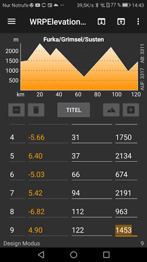 - The imported GPS tracks can be visualized as an elevation chart (start with version 2.0 also in 3D), which is synchronized with the map view.