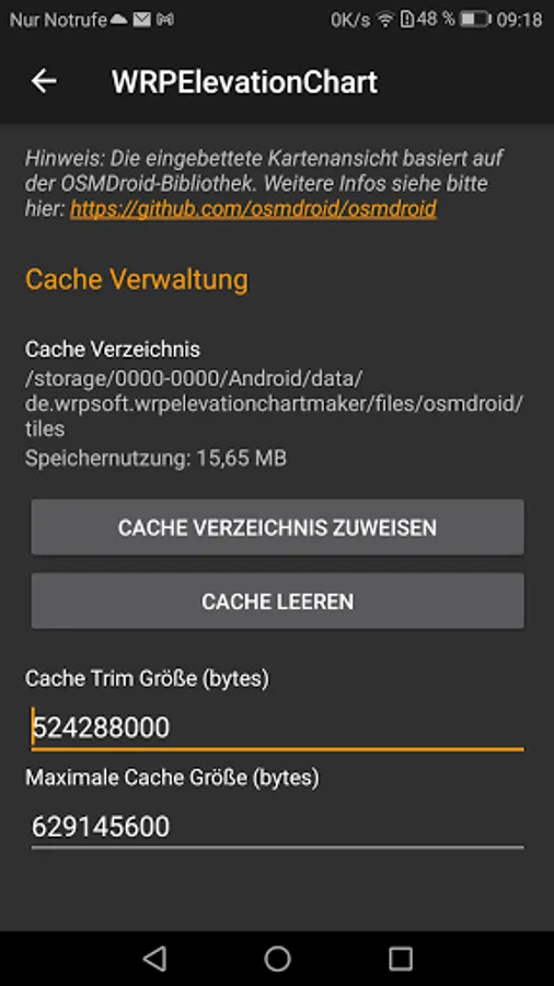 ATTENTION: When using the map view, DATA (map sections, so-called tiles) are DOWNLOADED from the Internet. This can lead to corresponding costs when using a mobile data connection. A WLAN connection or a mobile data flat rate is therefore strongly recommended!
