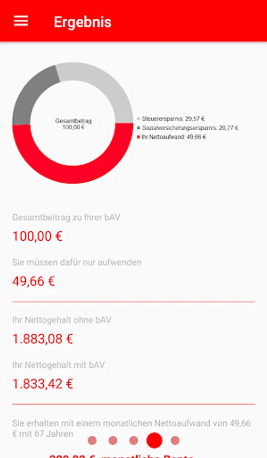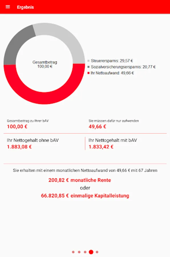 Calculate very easy as you can gain the most from a company pension scheme with the gross-net calculator Sparkassen Pensionskasse AG.