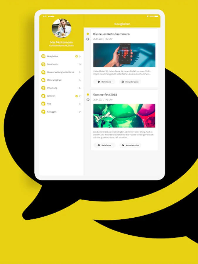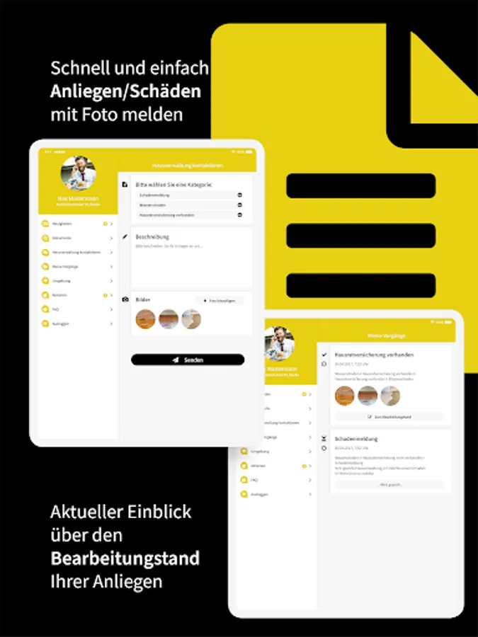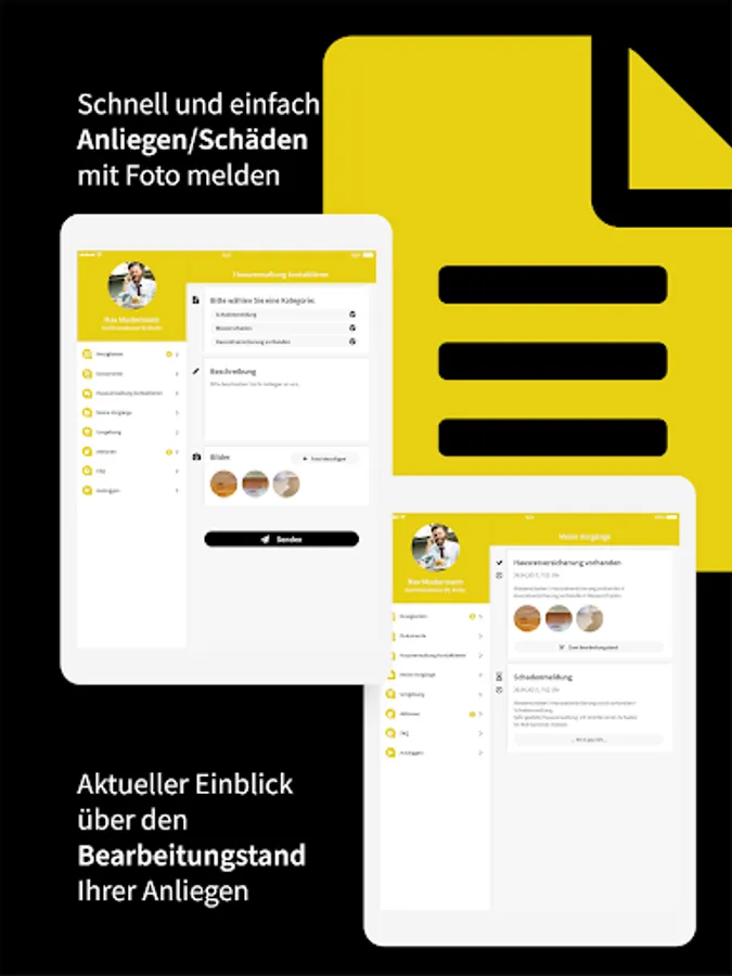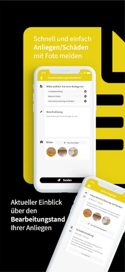 As a tenant or owner, you can report damage or concerns directly with photos via our app. Your inquiries are then available to our employees and can also be forwarded to craft businesses.