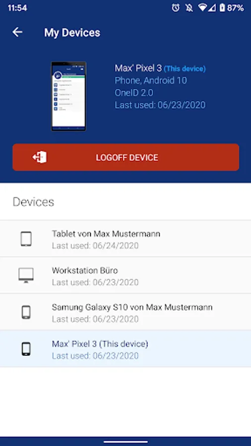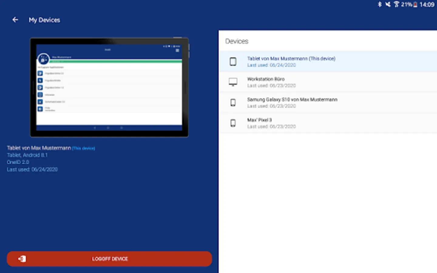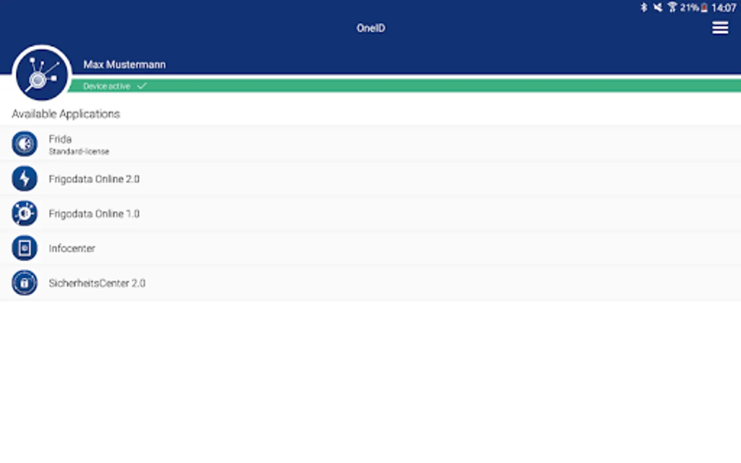 The icons that you see on your personal OneID screen depend on your user ID. Whatever the number of icons – you reach your target with a tap of the finger.