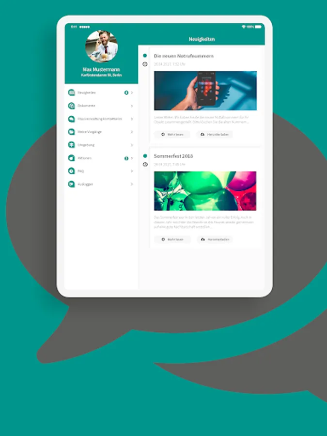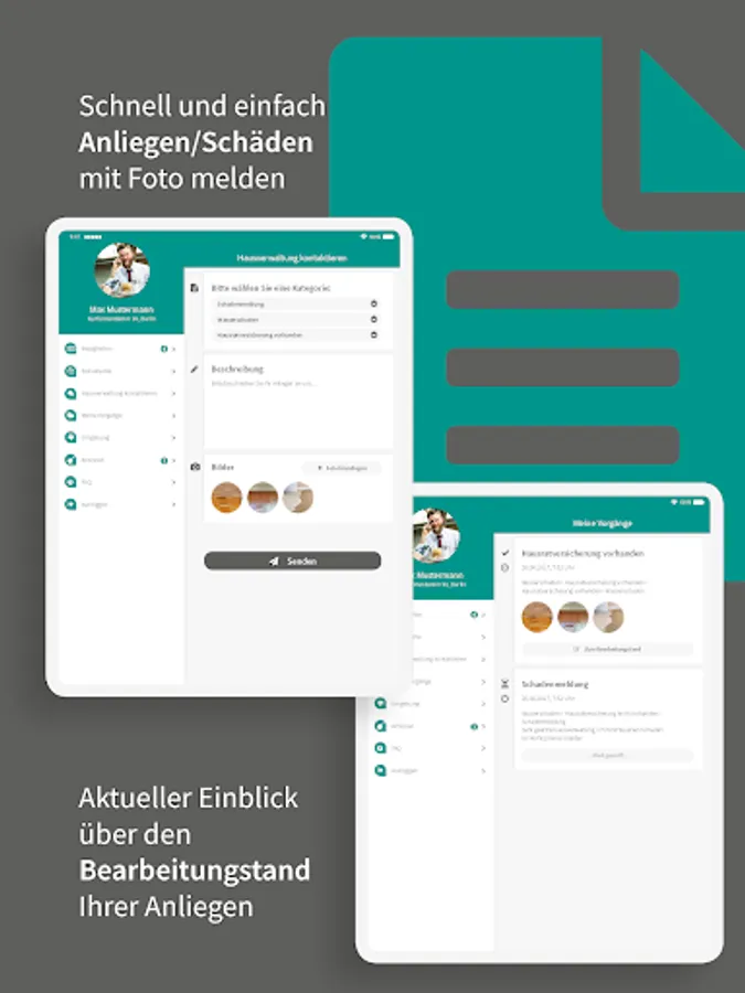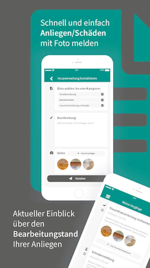 As a tenant or owner, you can report damages or concerns directly with photos via our app. Your inquiries are then available to our employees for processing and can also be forwarded to craft businesses.