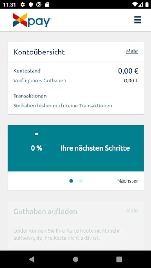 To be able to load more credit, you need a limit extension. The corresponding option "Upgrade now" can be found in your XPAY app. Log into the XPAY app. Click on Identification Level / Upgrade Now and follow the instructions. Please note that this option is no longer available if you have already carried out the limit extension.