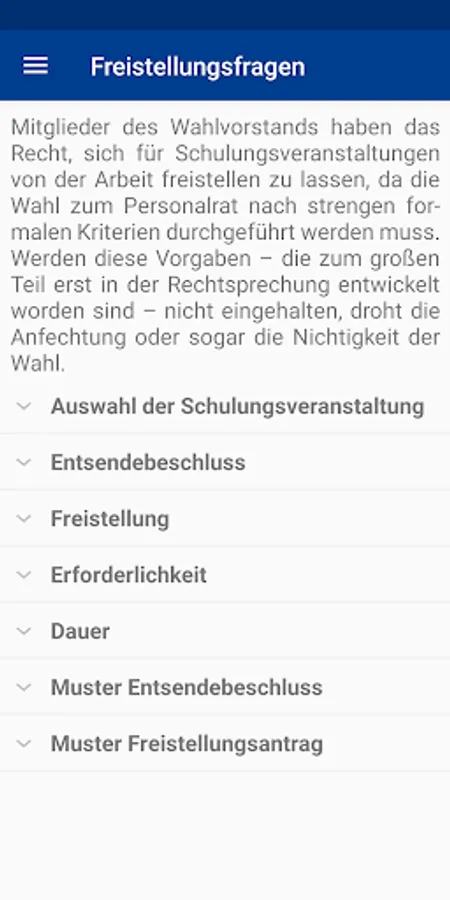 With our election helper app for the 2020 Staff Council elections in accordance with the LPVG, we provide you with guidance on questions of exemption for electoral board members and on the cost of these training courses before attending electoral board training, and answer some basic questions about the elections. With the deadline calculator of this app, key dates can be determined quickly, the group calculates the number of seats in the staff council depending on the total number of employees and the number of employees and officials in the office and explains how many seats each the two groups have to go.