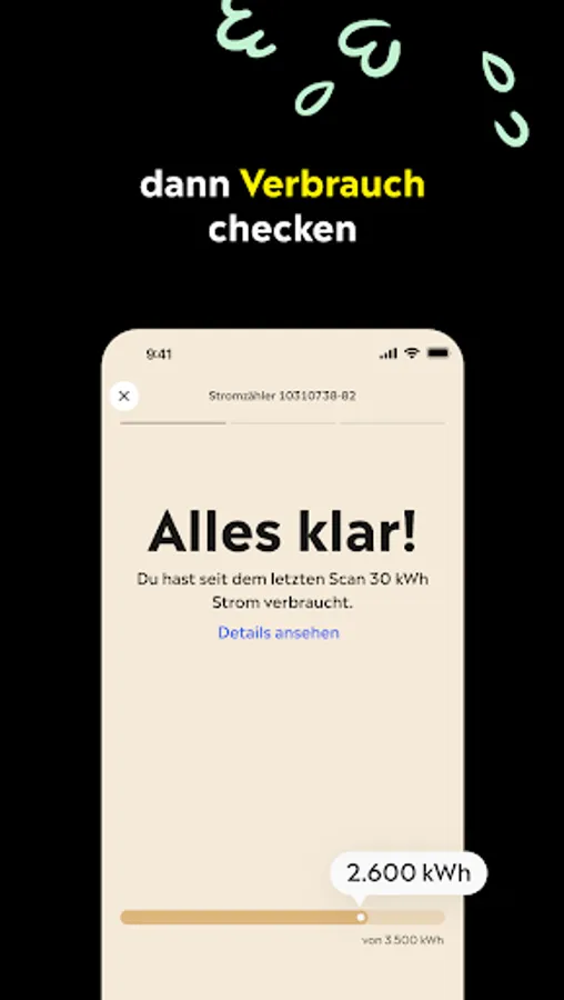 We make transparent for you what is really behind your meter reading. You scan your meter when and as often as you want. We will show you what you can get out of it and how you can balance consumption and costs. So you know in good time what will come with your bill: additional payment or a credit note.