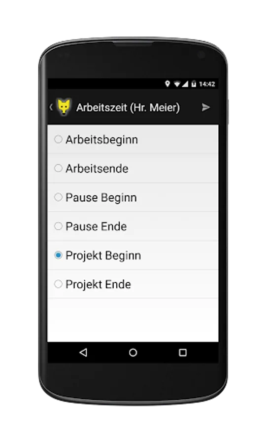 With the Yellow Time Manager app from YellowFox you have the option of working, breaks and project time mobile and location-independent basis over Android and transferred directly into the Web application Yellow Time Manager. Your time records are always in sync with the web application, manual trimming is not necessary.