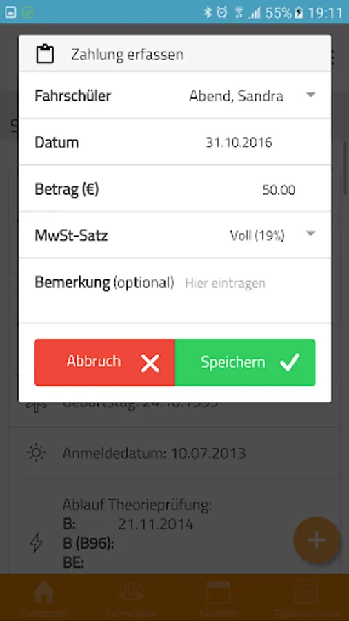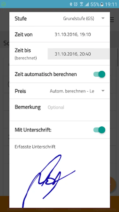 All main services (incl. Other activities), you can enter directly from the app and be possibly signed by your students. The services are automatically synchronized in the background, so you can be certified manager billed directly at YOU DRIVE PC or. Also, changing and deleting unbilled services is possible, including the re-capture of the signature.