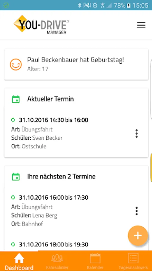 On the dashboard, you have all the important information at a glance. Can be found here, for example, birthdays, current and upcoming appointments.