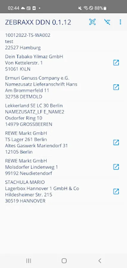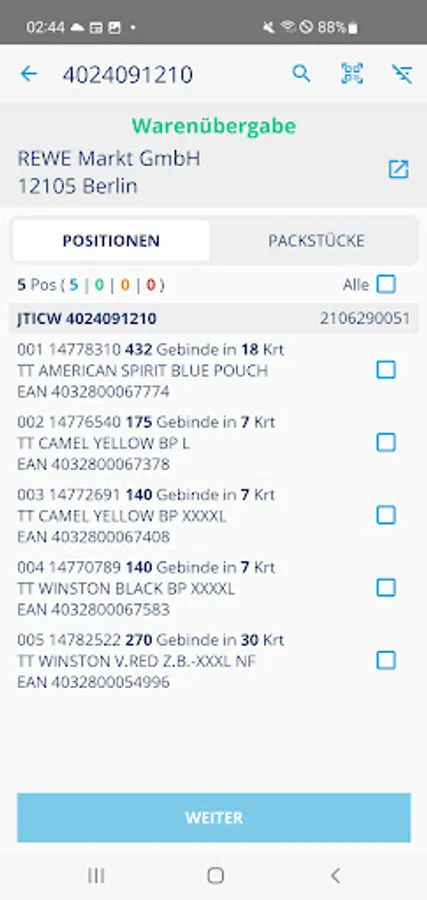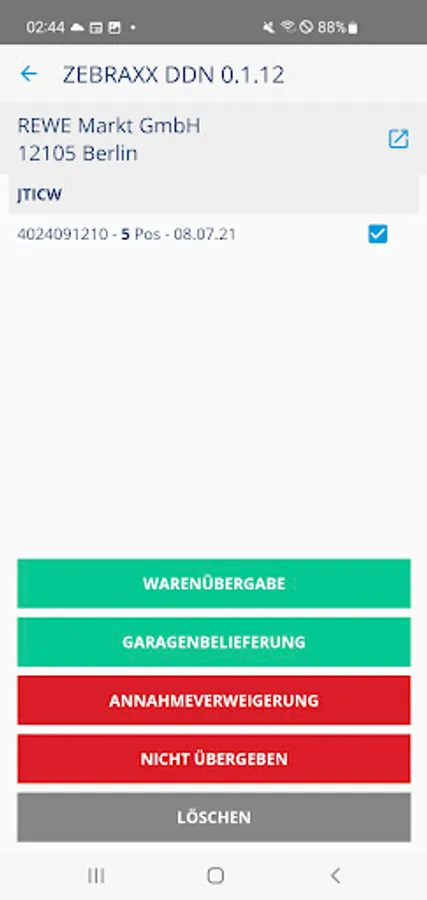 Status recording via Android smartphone: visualization of the digital delivery note processes.