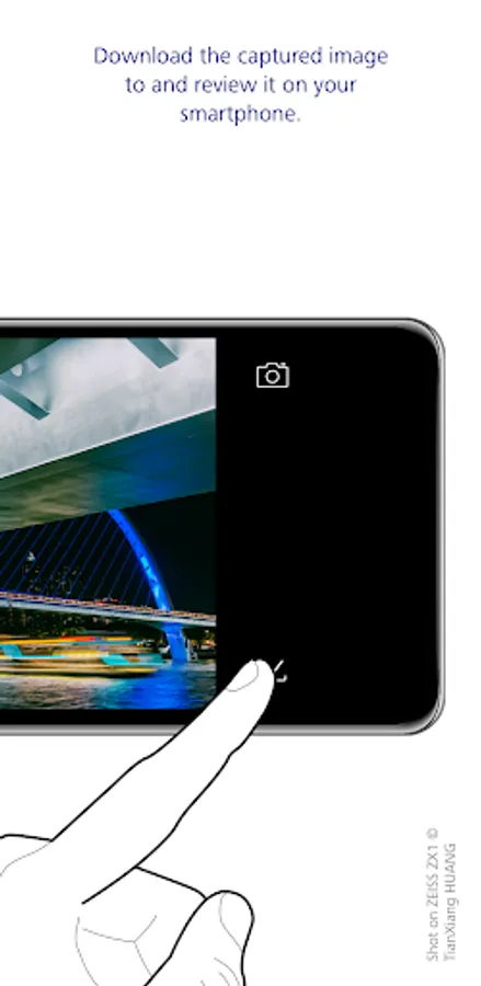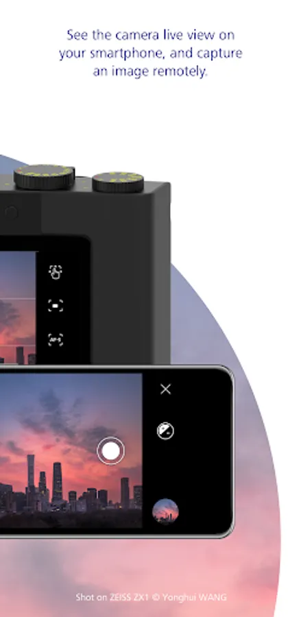 Use your smartphone or tablet as a remote control to see the live view and capture content using your ZEISS ZX1 camera. Images captured via the ZX1 Companion app can also be reviewed from the app.