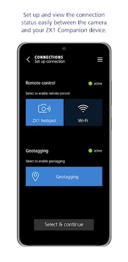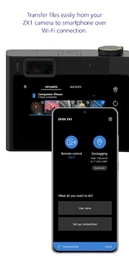 Following the setup screens to pair your smartphone or tablet with your ZEISS ZX1 camera is quick and easy.