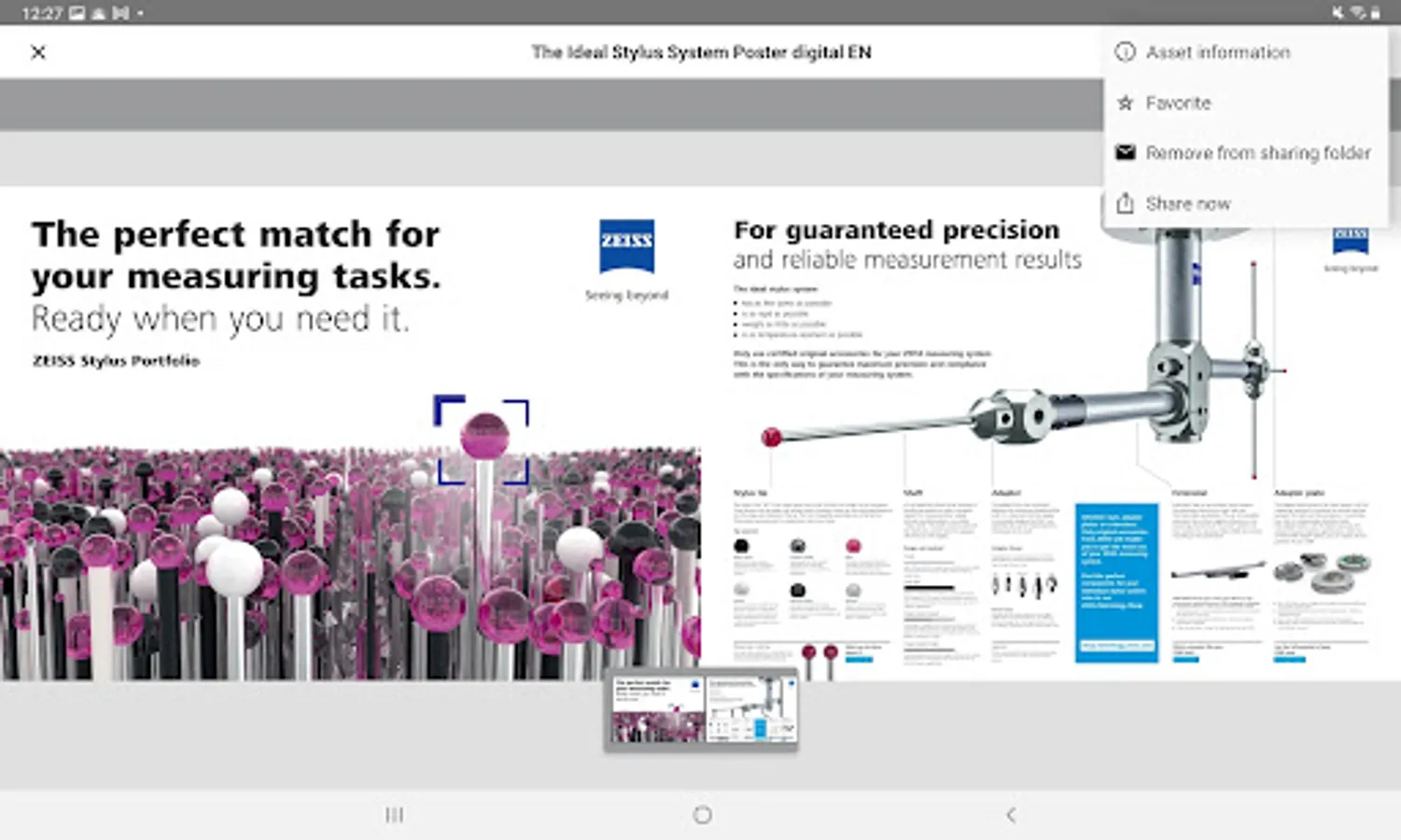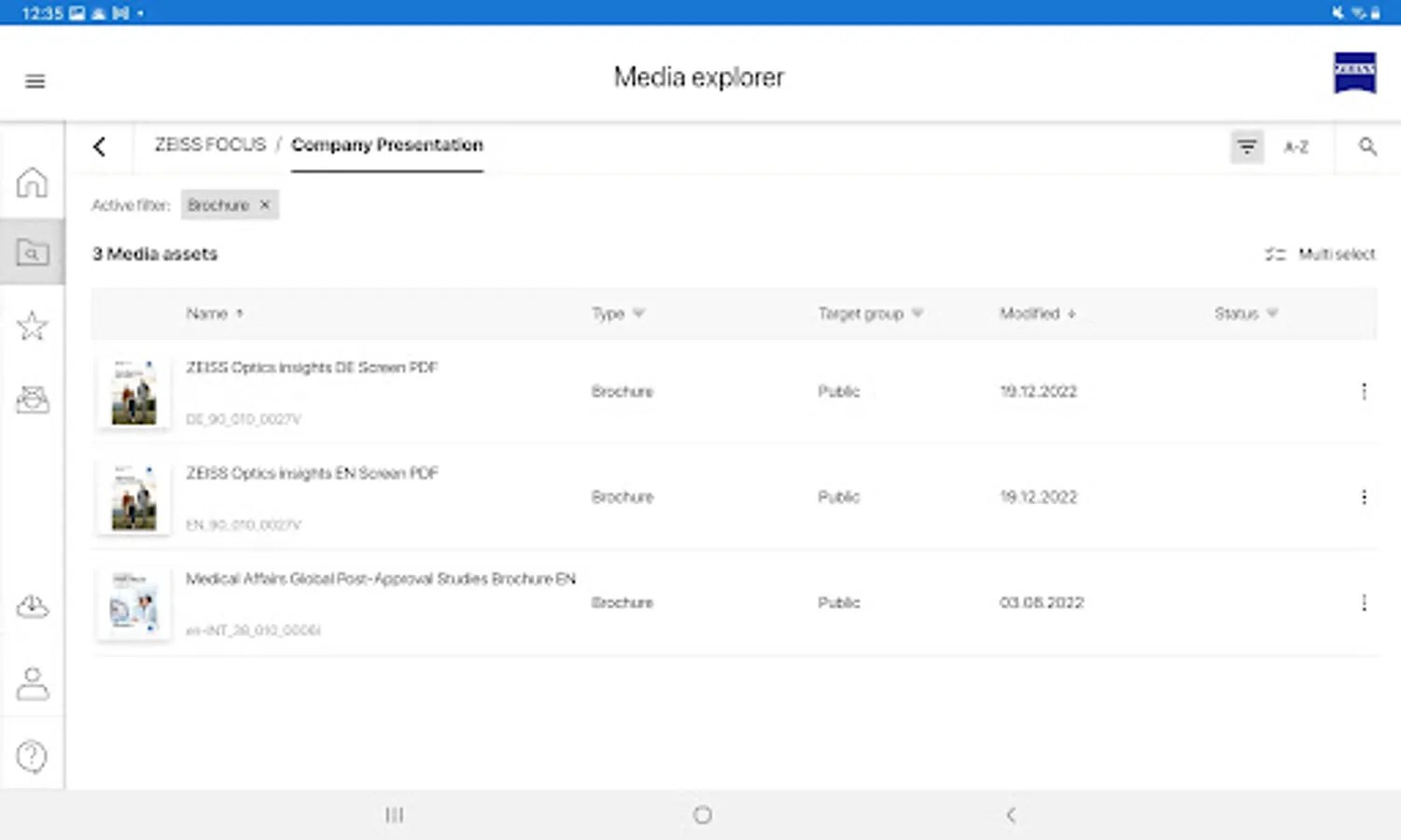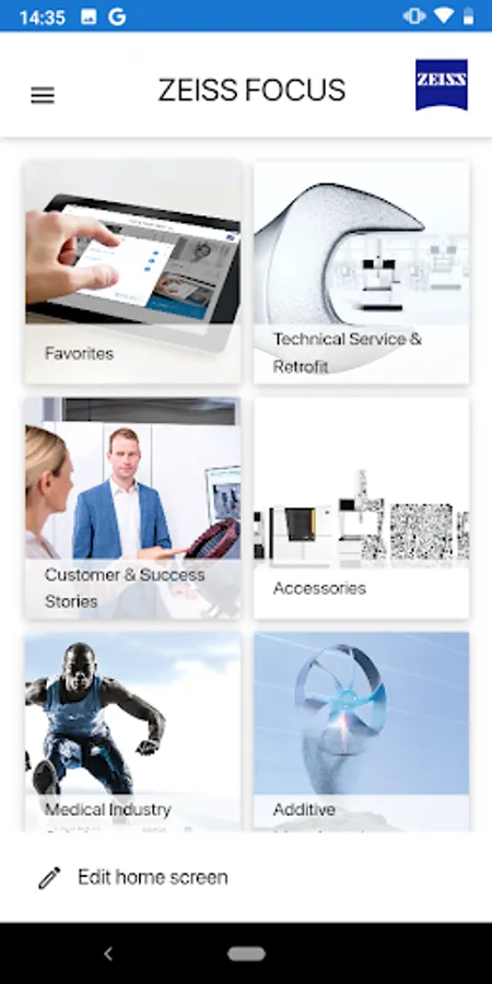ZEISS FOCUS is designed for the worldwide sales and marketing teams as well as for related distribution partners of the Medical Technology and Metrology divisions of ZEISS. This sales enablement tool allows users to quickly access all the latest sales and marketing collaterals, such as videos, interactive product demos, presentations, brochures, and whitepapers. The app is for authorized users only, who have signed up for a ZEISS ID account.