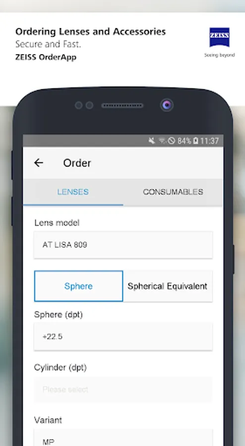 The ZEISS OrderApp is your digital companion in the OR when it comes to handling ZEISS consumables. Its main features are