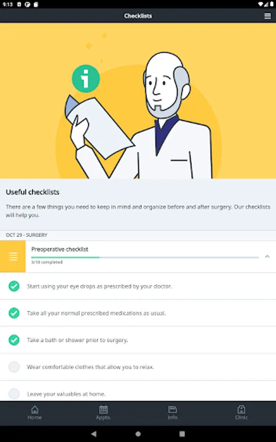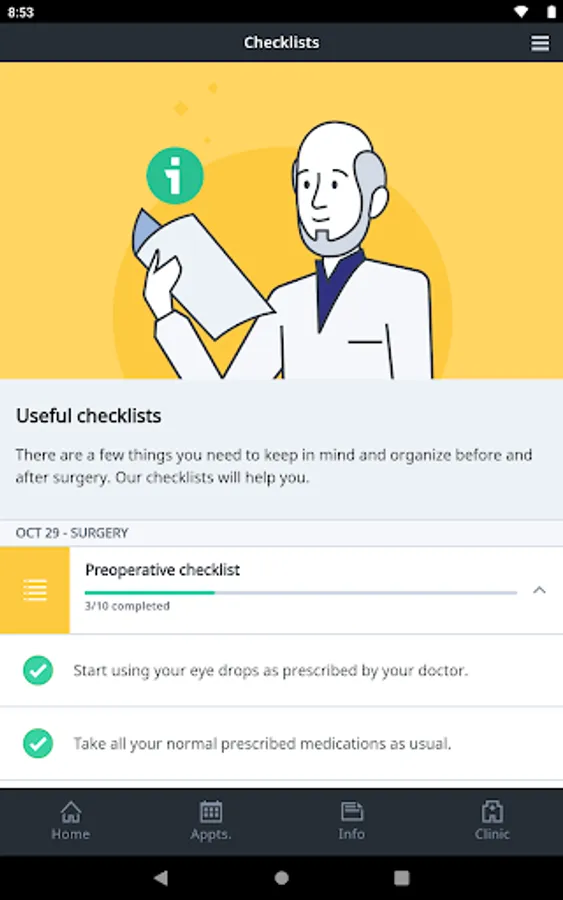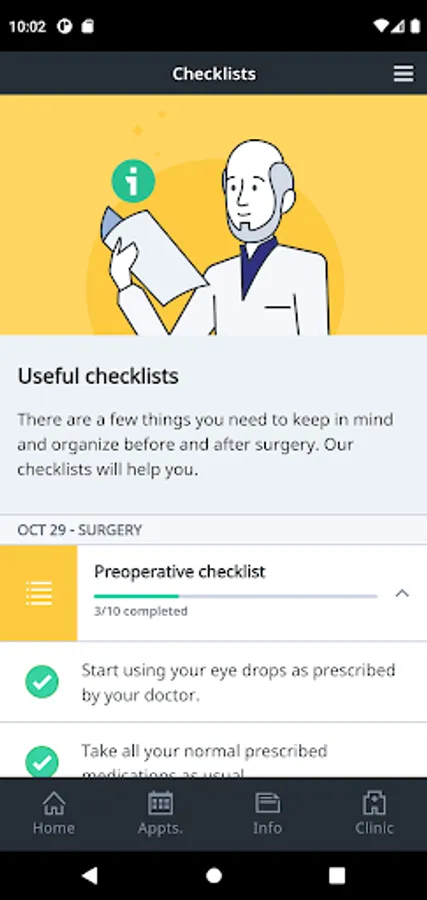 Checklists, an appointment tool and an eye drop reminder will assist you to smoothly undergo the treatment. Additionally, the app provides you with information from your clinic including details on treatment options and additional services provided so you would be able to make the best treatment decisions together with your doctor.
