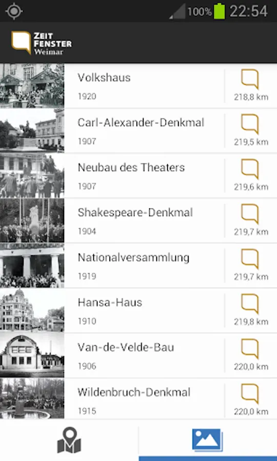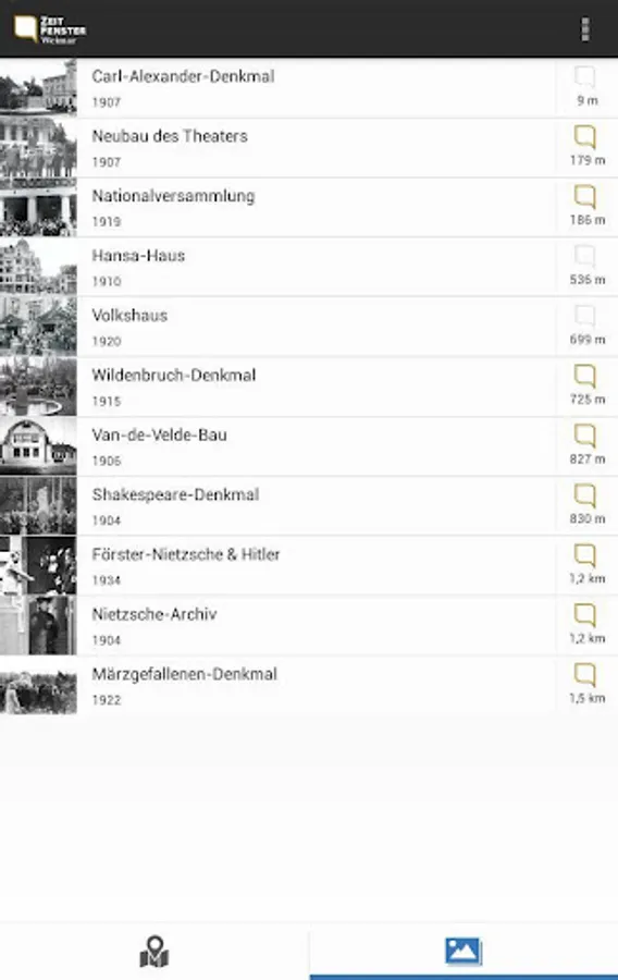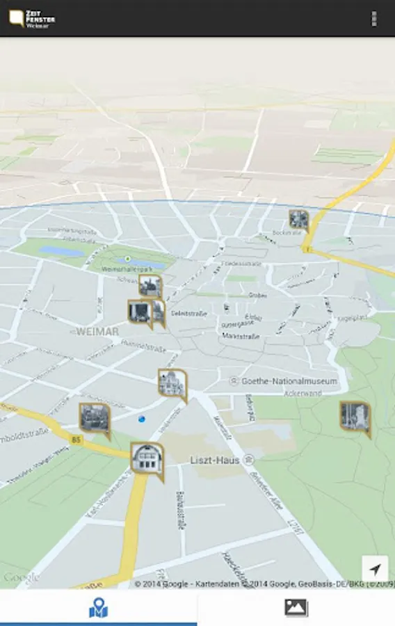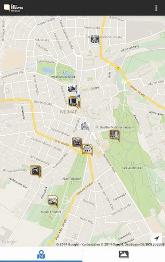 About text and audio guide provides information on the events on the historic pictures. This content was written by students of the Humboldt High School in Weimar and eingesprochen. The app was developed as part of an educational project of the Klassik Stiftung Weimar in cooperation with the Federal Agency for Civic Education.