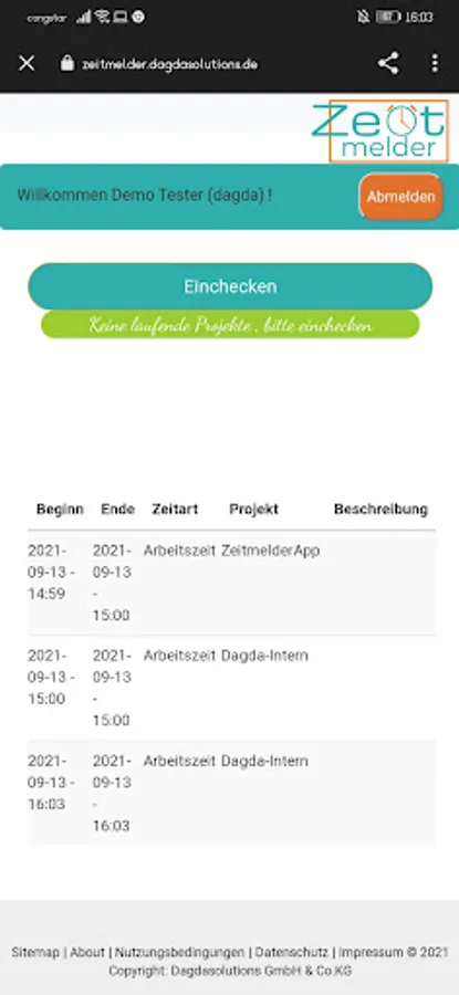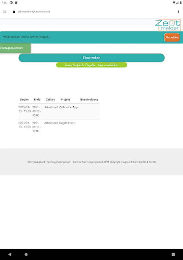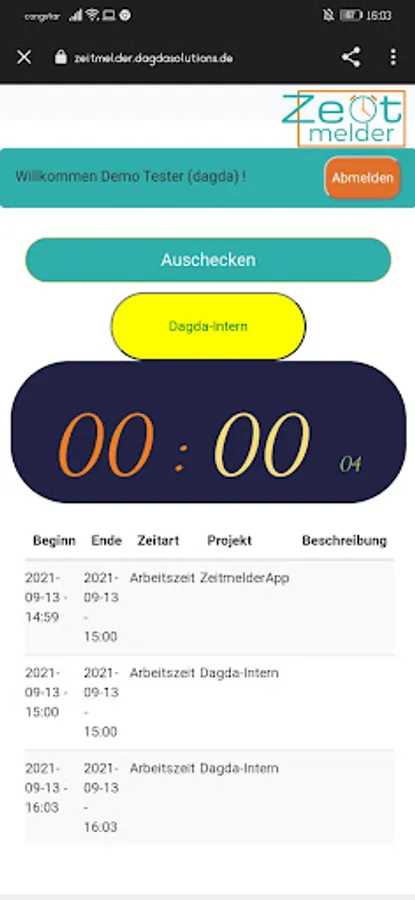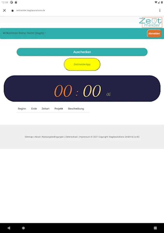 The timer app is part of the timer application. This can be used to book working hours on the move. If you are interested in the functionality of the time reporting application, please visit our product page https://zeit-melder.de or contact us directly.