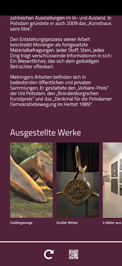 The app contains further information in text and images about the artists and their works on a total of 27 stations. The texts are played in German.