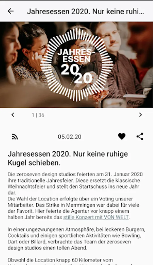 Based on RSS technology, several zeroseven design studios feeds are already preinstalled for you. This means you will no longer miss any news, be it on the agency's current references or topics relating to agency life.