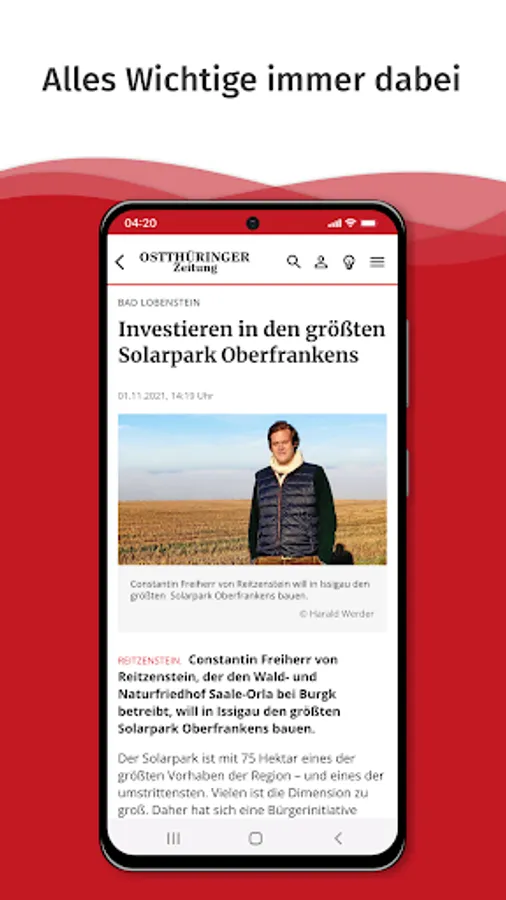 The OTZ News app offers you the latest in politics, business, culture and sport seven days a week. In addition, there is extensive reporting from Altenburg to Zeulenroda - all clearly and attractively designed.