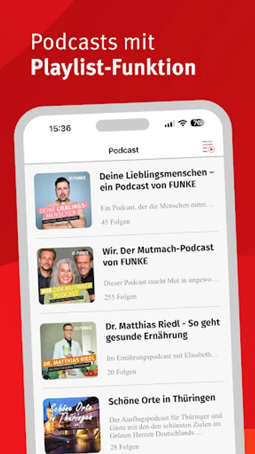 - Podcast: In the e-paper app you will find a variety of editorial podcasts - from the daily news overview to many special topics.