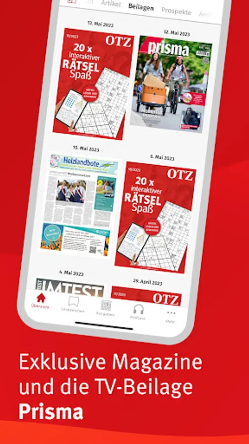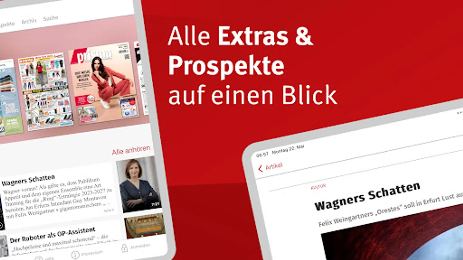 Read your newspaper anywhere - on the subway, in a café or on vacation. You can read all downloaded issues at any time, even without an internet connection. You don't have to do without digital brochures and inserts either, you can find everything with just one click in our start menu.