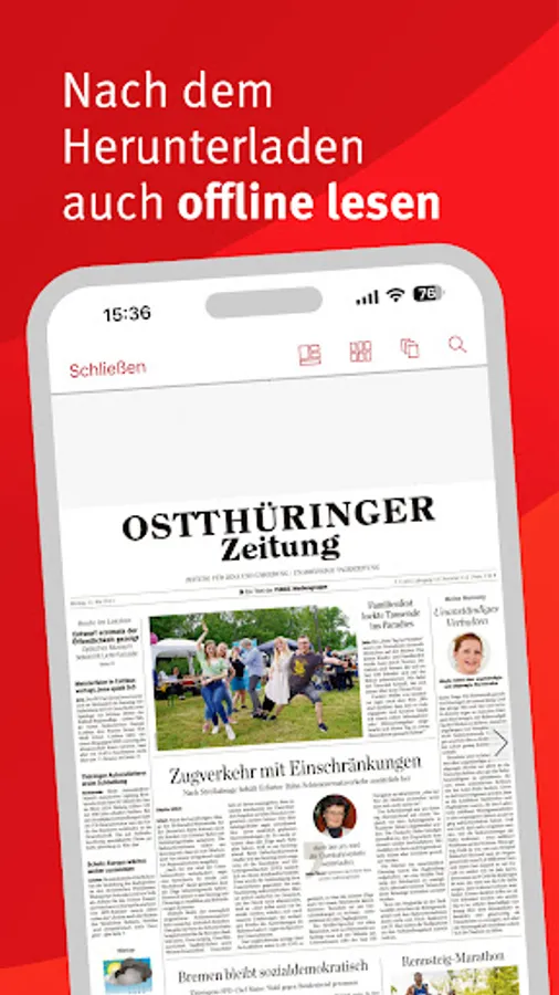 In your e-paper app you can read all local editions of your OTZ, such as the OTZ Saalfeld/Rudolstadt, OTZ Gera or the OTZ Greiz/Zeulenroda.