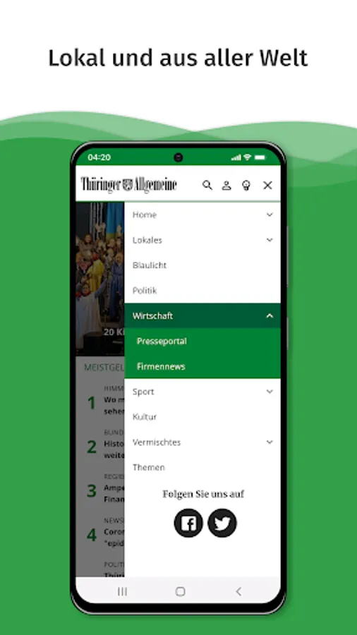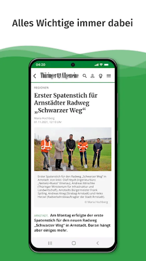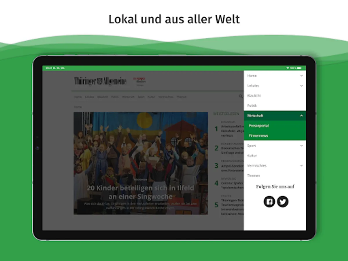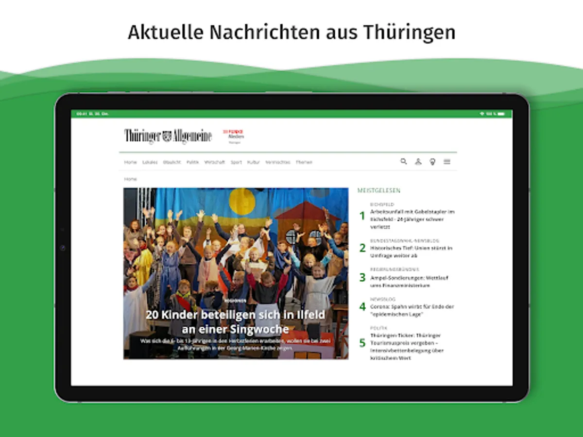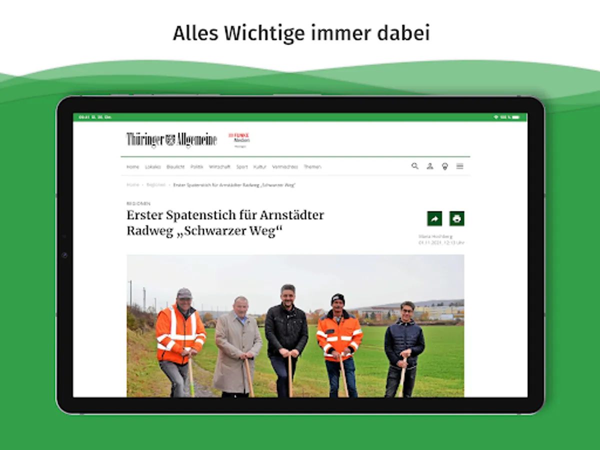 With the largest newspaper in Thuringia, you are also well informed on your smartphone: local, regional, everywhere. With access to regional news from Apolda to Weimar, you won't miss any news from Thuringia and the world.