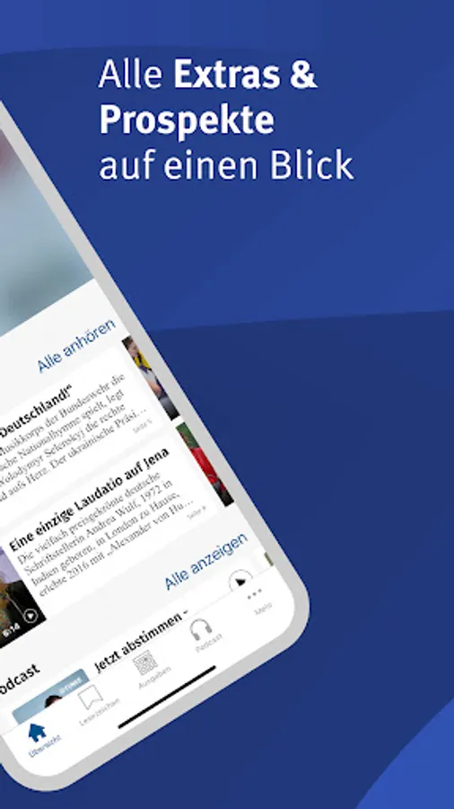 - Podcast: In the e-paper app you will find a variety of editorial podcasts - from the daily news overview to many special topics.