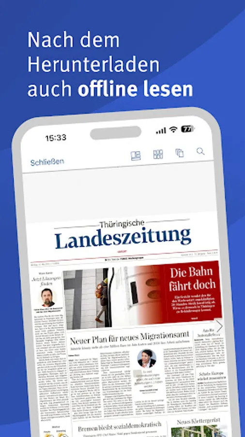 In your e-paper app you can read all the local editions of your TLZ, such as the TLZ Heiligenstadt, TLZ Jena or the TLZ Weimar.