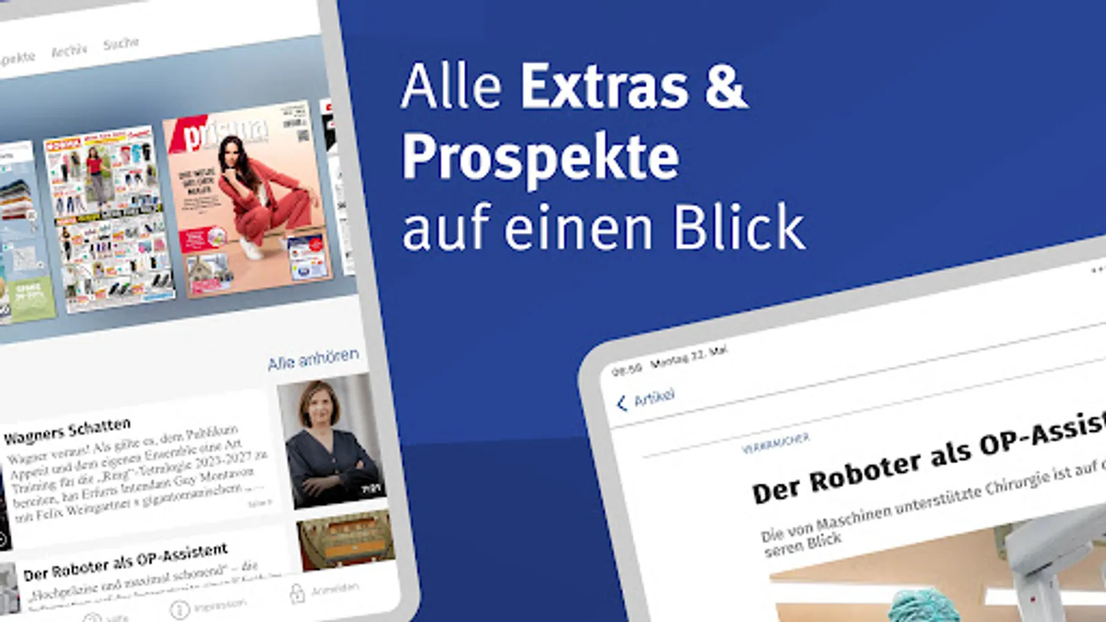 Read your newspaper anywhere - on the subway, in a café or on vacation. You can read all downloaded issues at any time, even without an internet connection. You don't have to do without digital brochures and inserts either, you can find everything with just one click in our start menu.