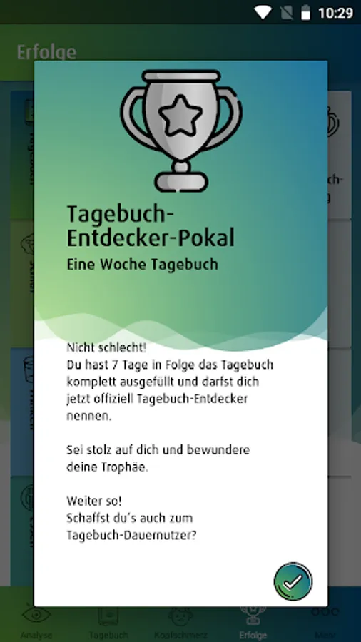 • 'Headache knowledge' gives you feedback on your success in preventing (preventing) headache.