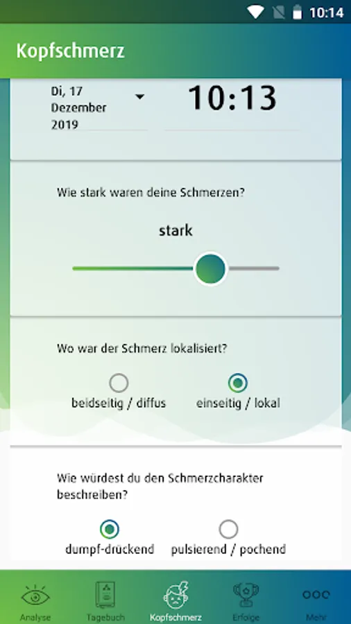 • 'Headache knowledge' analyzes your information about headache complaints and tells you whether they have characteristics of migraines, tension-type headaches or headaches when using medication. To do this, she uses the International Classification of Headache Diseases (ichd-3.org).