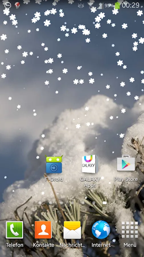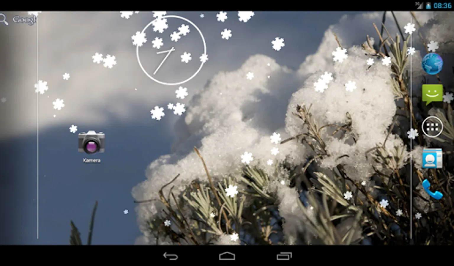 Choose your favorit from six different pictures. Also the number of snowflakes and the speed of the snowfall can be set. There are further options to change the snowfall to your liking.