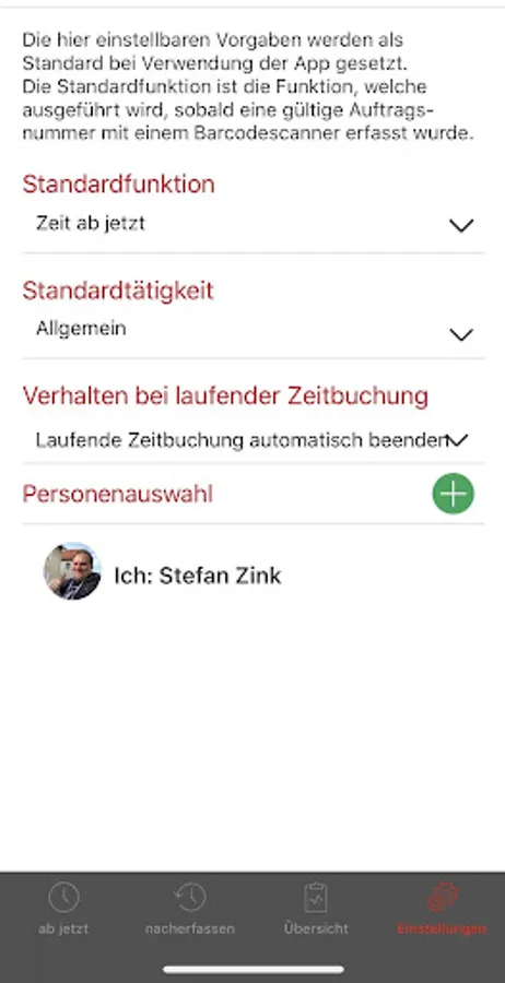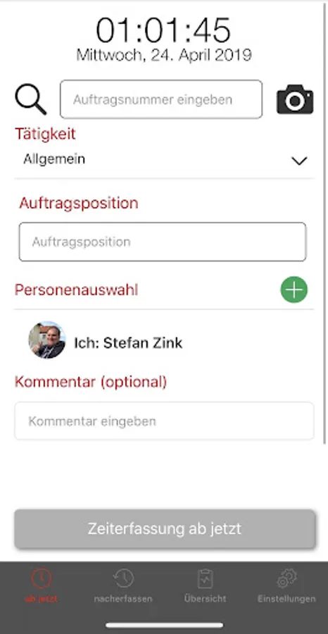 Book your times on orders or activities by scanning the appropriate barcode, or enter your data via the integrated search.