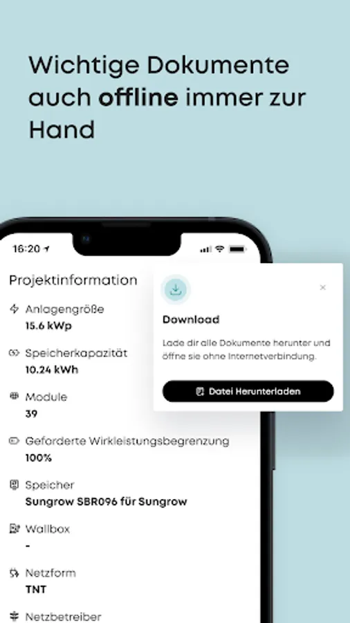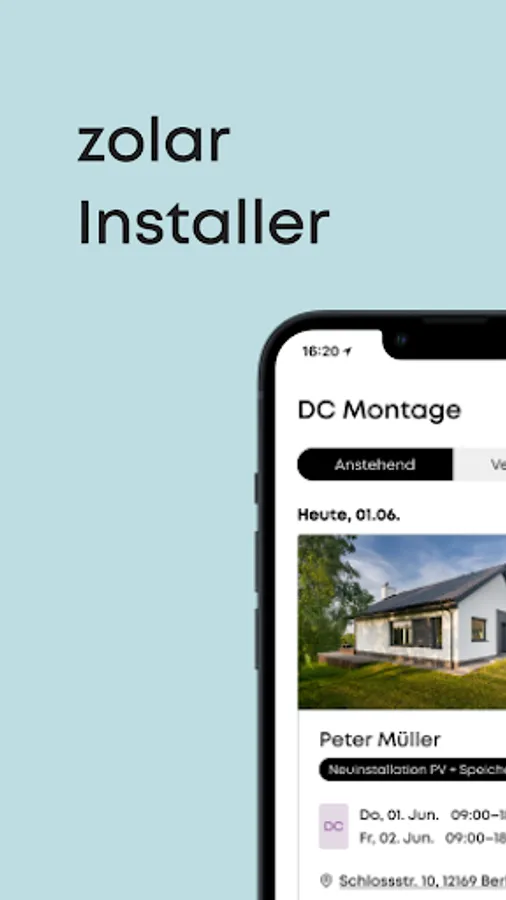 The zolar installer app makes your work on site with the customer easier by guiding you safely through the individual installation steps and their documentation. Here you will find all project data, photos of the system and relevant technical information on the hardware ordered. Upload images for the projects directly with the app and thus speed up the secure processing of your installation.