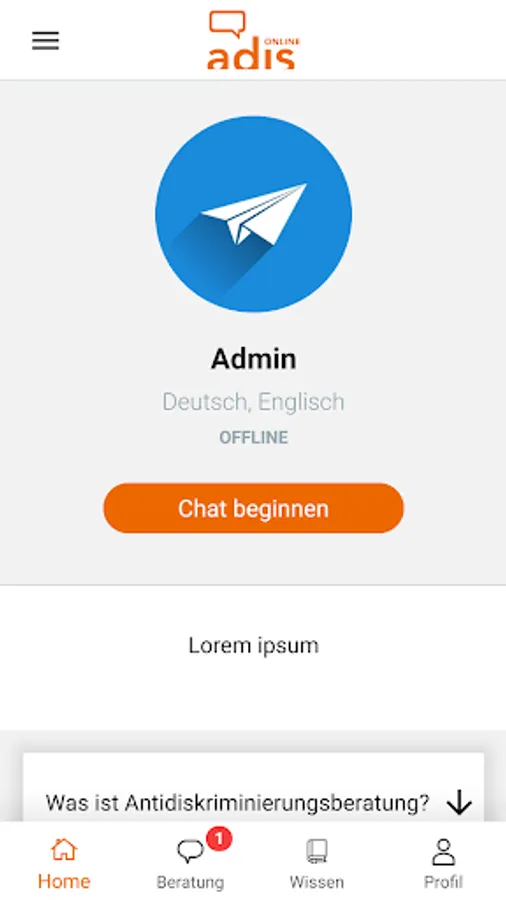 adis e.V. is an association that sits in Tübingen. With the online consultation at adis-online.com (e-mail consultation, chat advice, group chats) and the adis online messenger we would like to bring anti-discrimination advice in Baden-Württemberg to the surface.