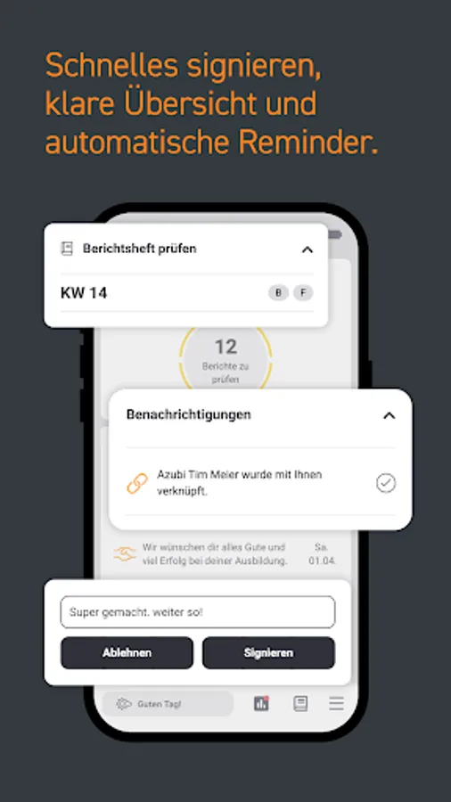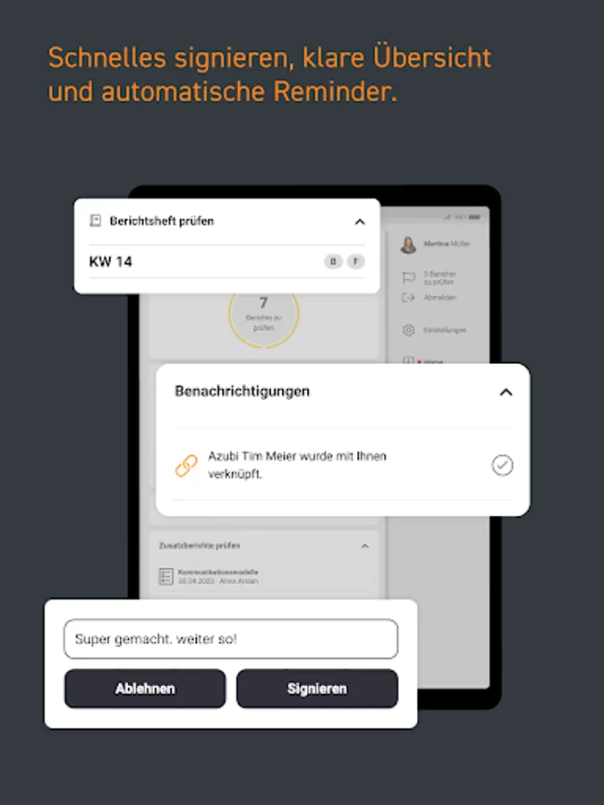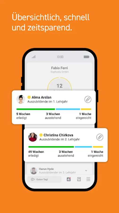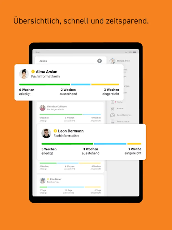 Have all trainees and tasks at a glance and save a lot of time and nerves. The trainee app is suitable for all HWK and IHK professions and optimally supports vocational training. Practical functions make work easier.