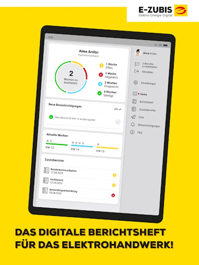 The E-Zubis app is the digital answer to the analog report booklet: Fast, modern, easy to use and full of impressive functions.