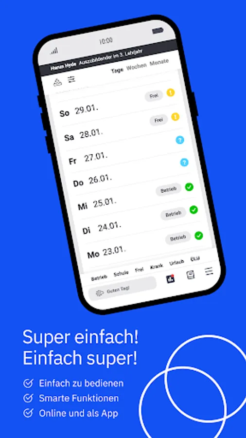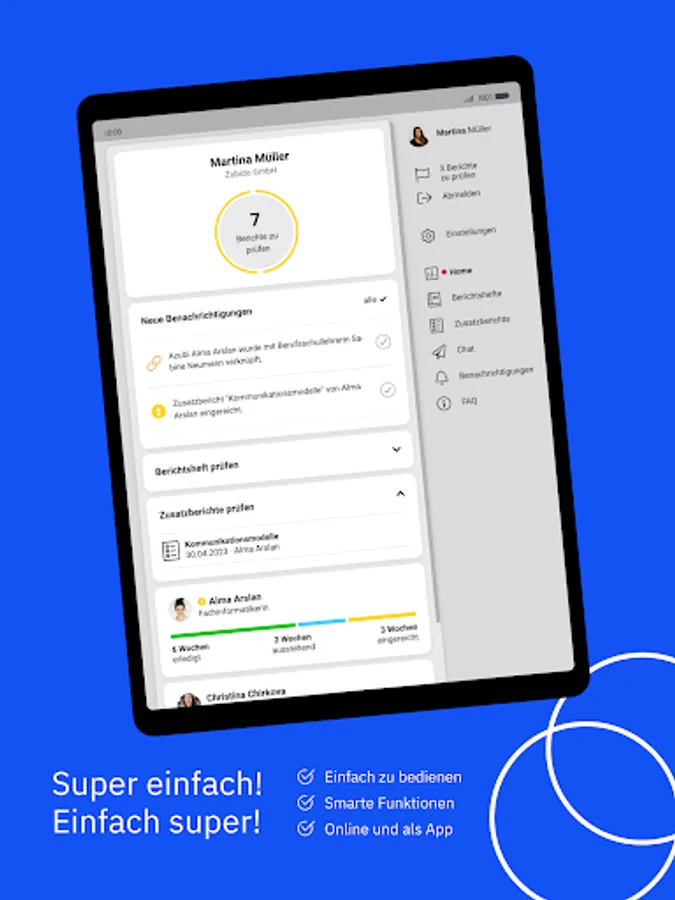 Have all trainees and tasks at a glance and save a lot of time and nerves. The trainee app is suitable for all HWK and IHK professions and optimally supports vocational training. Practical functions make work easier.