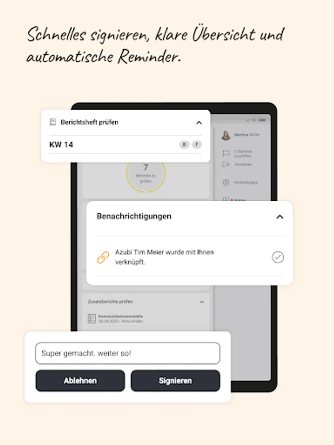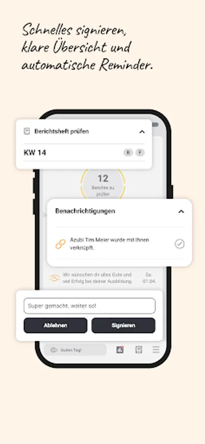 Forget report book templates and software from the day before yesterday. The trainee app makes your life easier immediately! Experience the best design and use smart functions to write training certificates faster and easier.