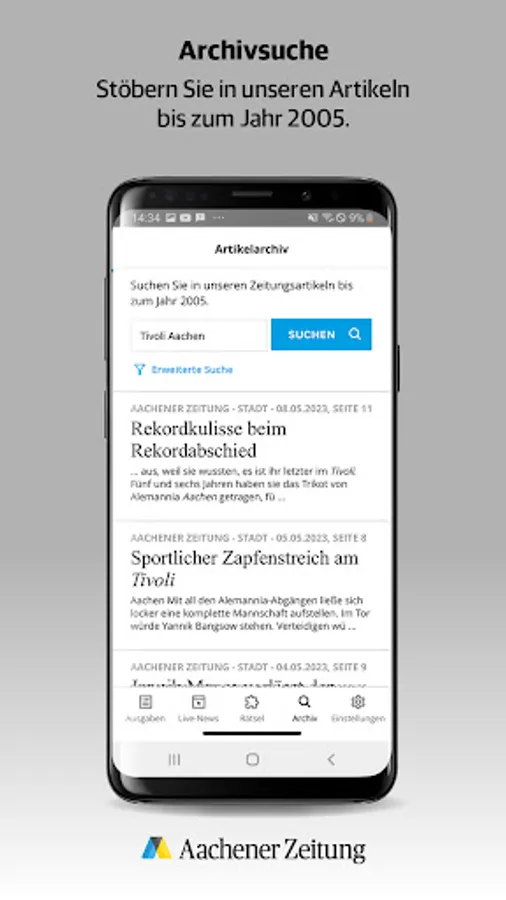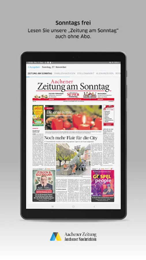 If you already have a subscription to the Aachener Zeitung, you can use the e-paper app free of charge.