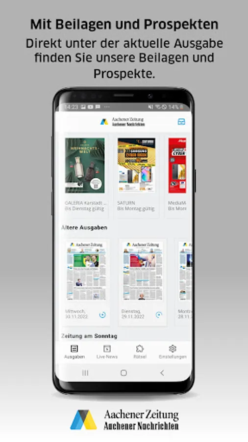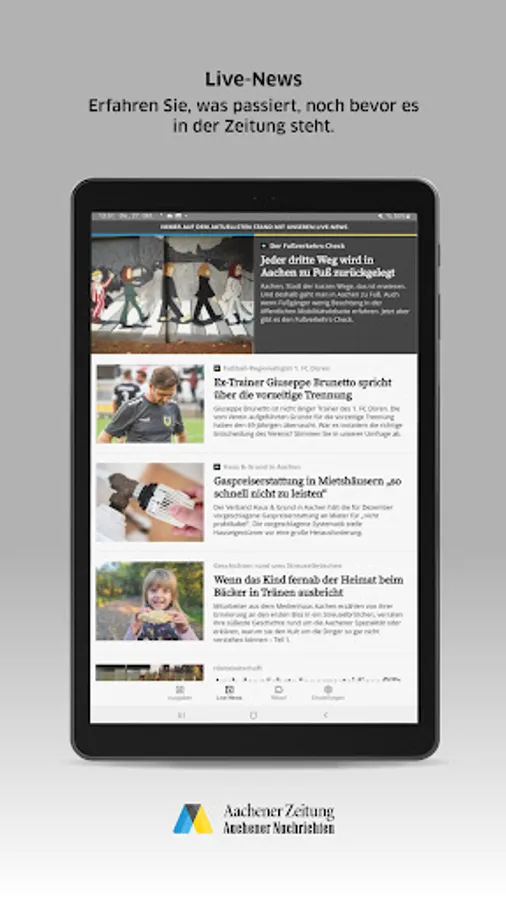 Read the daily local editions of the Aachener Zeitung digitally on your tablet or smartphone.