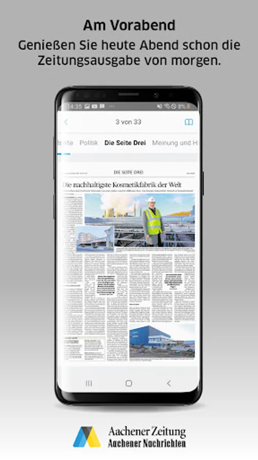 The AZ E-Paper offers you worldwide availability and easy handling. Read the current issue of the next day the evening before, which you can easily download and read offline. The e-paper app can be downloaded free of charge from the Google Play Store.