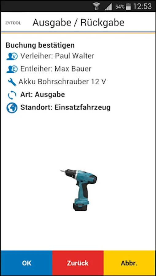 The ZVTOOL app is part of the ZVTOOL warehouse and tool management system. ZVTOOL enables you to always keep track of your equipment. For this purpose, all tools are clearly marked with NFC tags. The employees receive a person tag in the form of a key fob. With the NFC-enabled ZVTOOL Phone and the app, you can record tool entries and exits without touching them, without having to type in numbers or names.