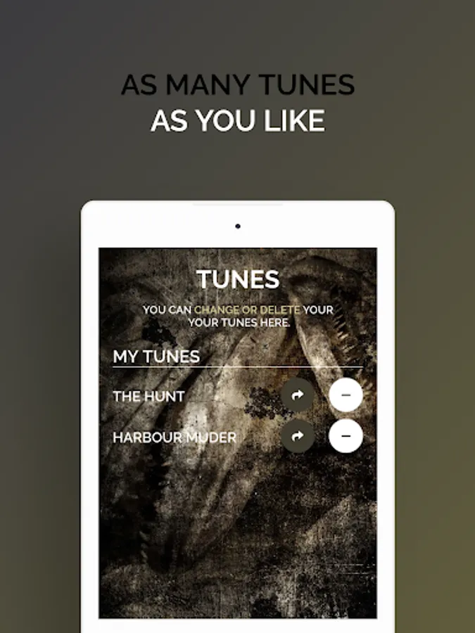 Since you can create as many tunes as you like, it makes sense to divide a roleplaying campaign or planned story evening into scenes or chapters. You can name each tune individually and later reopen and customize them in your library.