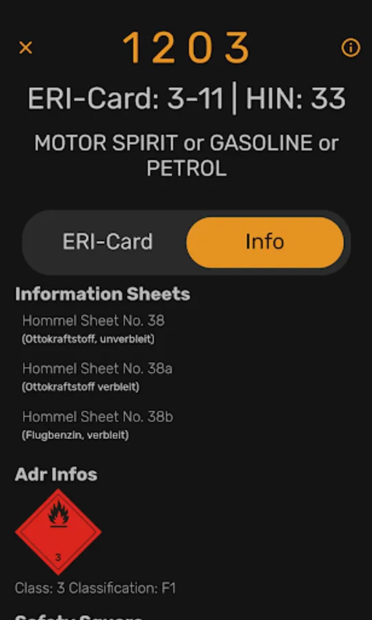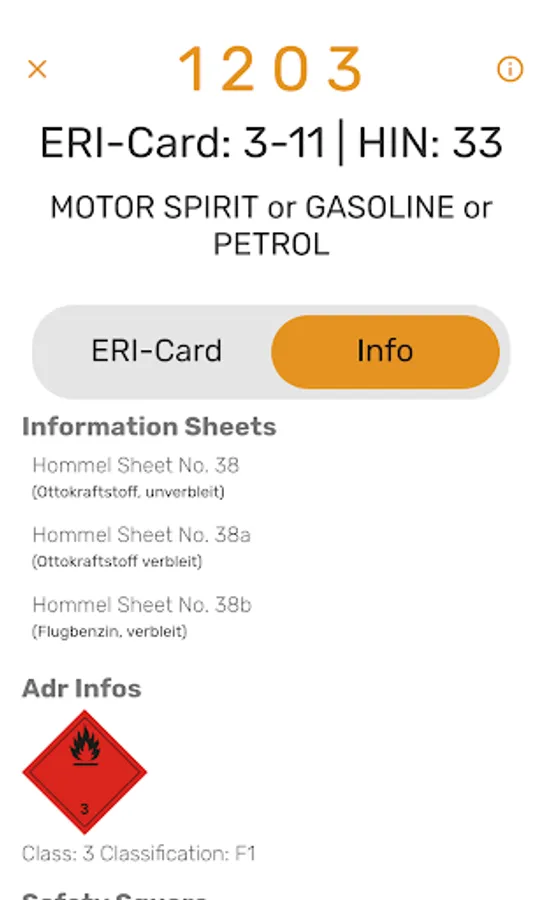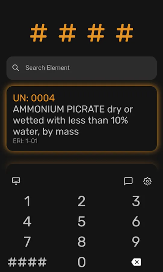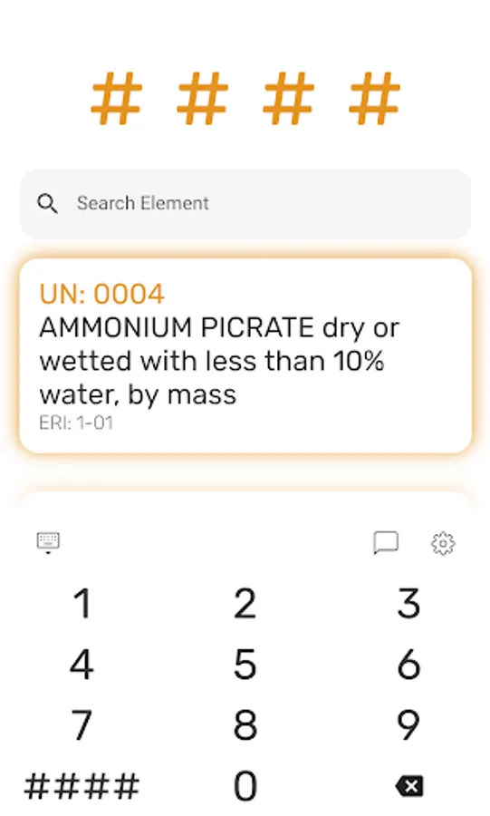 You can enter the UN number after starting the application using a big and easy to use keypad. Information can thus be retrieved quickly.