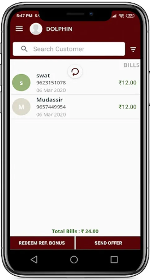 Add bill by using customer’s mobile number